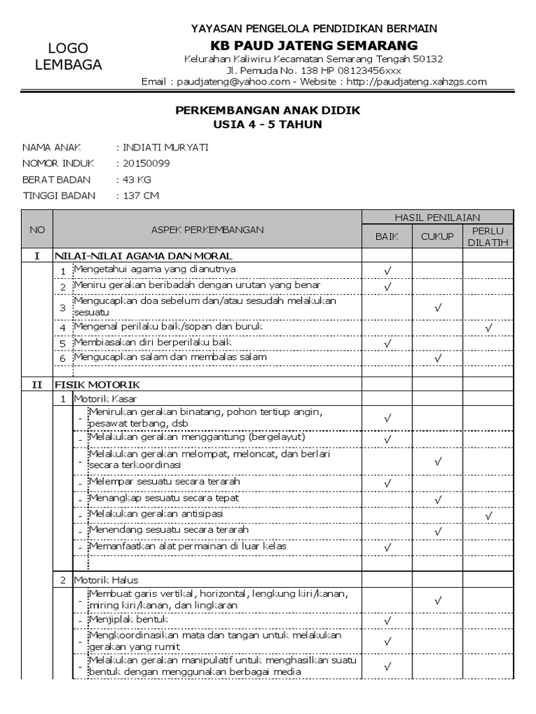 C 20 Contoh Raport Paud Otomatis Tk 4 5 Thn from data03.123doks.com Check spelling or type a new query. We did not find results for: Contoh narasi raport tk semester 2. Maybe you would like to learn more about one of these?